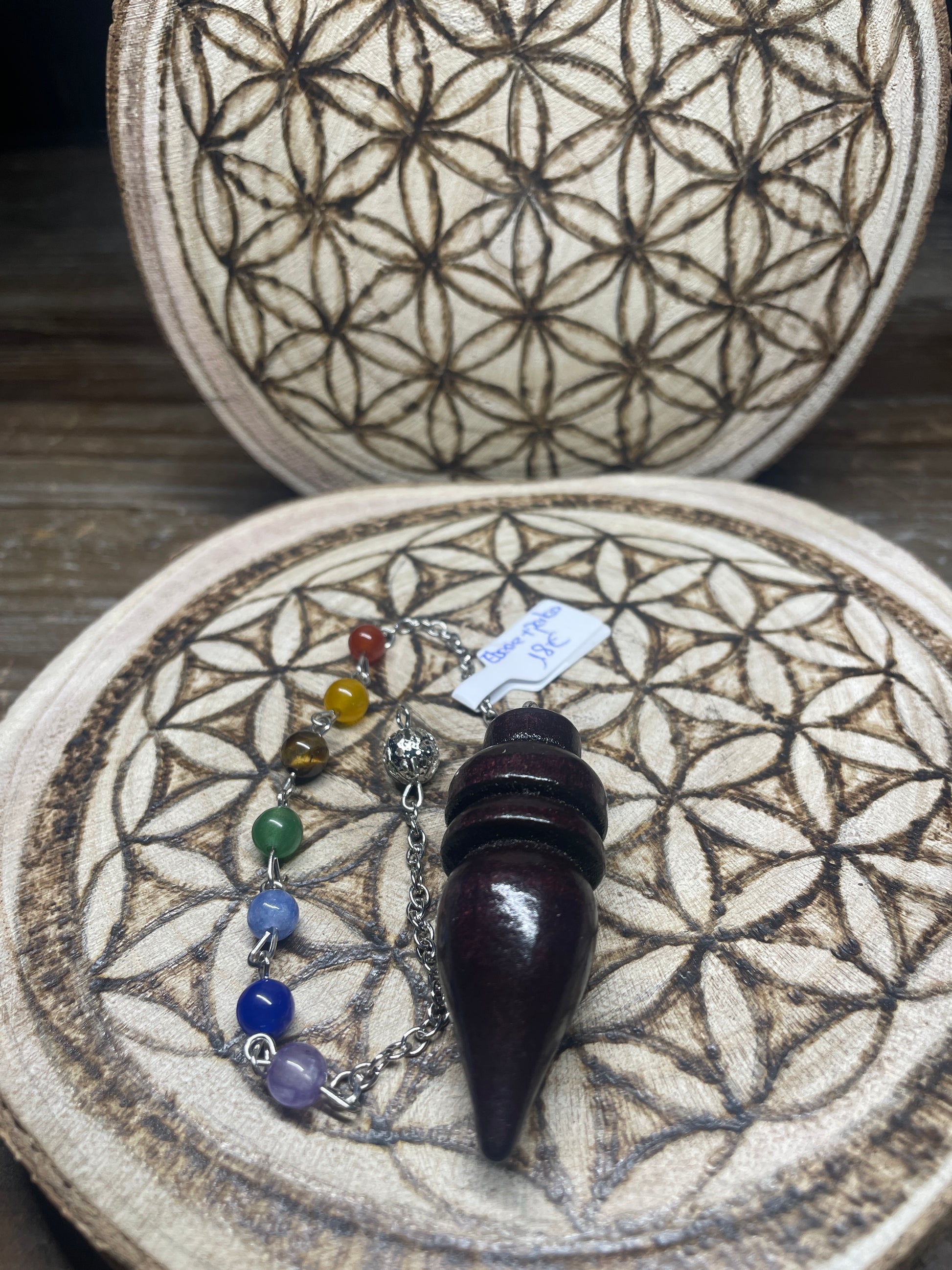 Découvrez ce pendule en bois d'ébène, un outil de divination alliant élégance et précision accompagnée de perles représentant les couleurs associées aux chakras. Sa finition soignée met en valeur la richesse naturelle de l’ébène, offrant une prise en main confortable et un équilibre parfait pour des lectures claires et fiables. Parfait pour les passionnés de spiritualité souhaitant allier esthétique et efficacité dans leurs pratiques divinatoires.