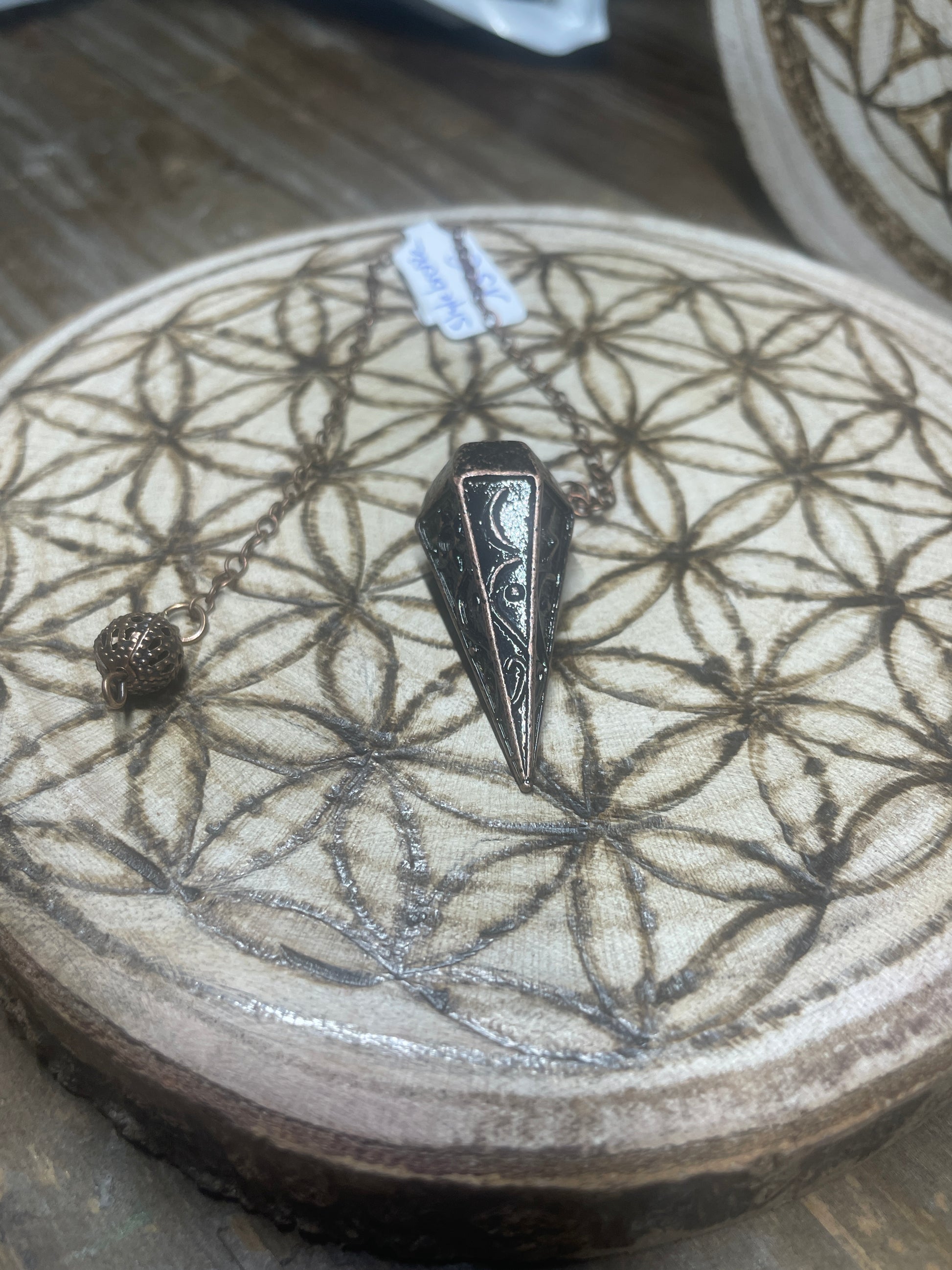 Ce pendule en alliage de bronze, allie élégance et durabilité. Son design raffiné en fait un accessoire sophistiqué, idéal pour vos pratiques divinatoires tout en apportant une touche chaleureuse et précieuse à votre collection.